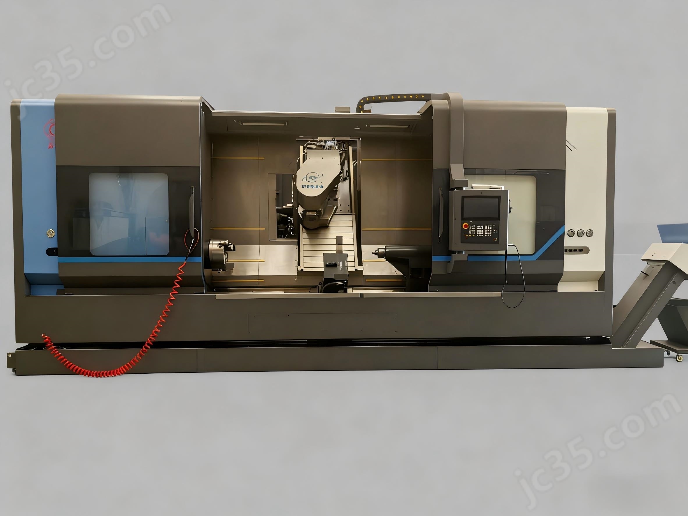 CHY6180-5×2000車銑復合加工中心是集車削、銑削、鉆削、鏜削、攻、鉸、擴、滾齒等功能于一體的高柔性五軸聯動車銑復合加工中心,主要是為了解決一次裝卡需車削、銑削直線、圓弧(圓柱面、回轉曲面、球面、圓錐面)、斜線、直、錐公制英制螺紋等加工形狀復雜、精度高的各種盤類及軸類零件,在單件和成批生產中均可獲得較高的關聯加工尺寸精度、減少加工輔助時間。