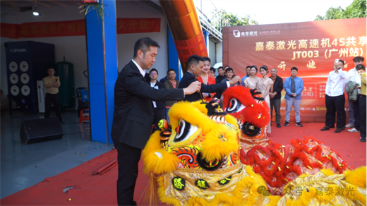 當陽光為番禺鍍上暖意,嘉泰激光高速機 4S 共享體驗站開業慶典在激昂的鼓點與祥獅舞動中拉開序幕。