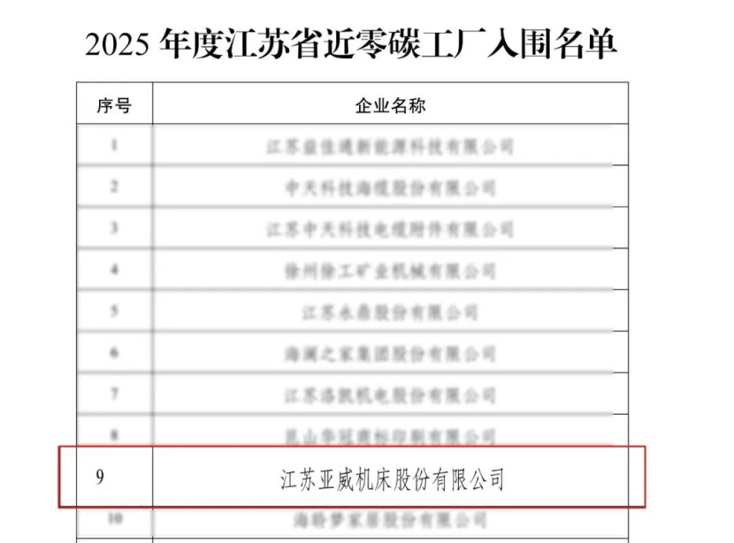 【機床商務網欄目 名企在線】日前,江蘇省工信廳公示了30家江蘇省零碳(近零碳)工廠入選名單,亞威股份成功入圍。