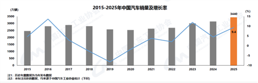 2025年全年,汽車產(chǎn)銷累計完成3453.1萬輛和3440萬輛,同比分別增長10.4%和9.4%,產(chǎn)銷量再創(chuàng)歷史新高,產(chǎn)銷規(guī)模連續(xù)3年保持在3000萬輛以上。