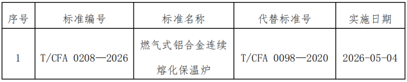中國鑄造協會批準發布《燃氣式鋁合金連續熔化保溫爐》團體標準,現予以公告。