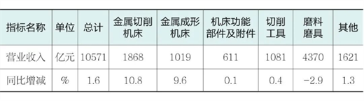 表1 2025年機床工具行業及主要分行業的營業收入情況