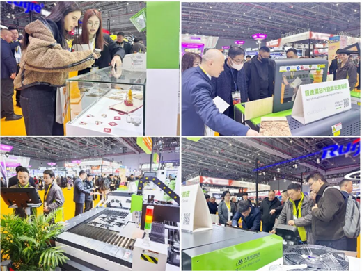 展會現場,粵銘激光集團展位特別設置了激光加工技術演示體驗區,通過多種材料、多種工藝的實時加工演示,讓觀眾直觀感受設備的精度與效率。在常規廣告行業基礎加工應用展示之外,現場還特別演示了“福字”、“生肖馬”等春節元素以及“LABUBU”、“瘋狂動物城”、“哪吒”等熱門IP的快速切割和雕刻,生動還原復雜造型與細膩紋理。傳統文化與潮流IP同臺呈現,充分彰顯了激光加工科技在精細加工領域的強大實力和創意設計表達、柔性加工領域的廣闊潛力,吸引眾多觀眾駐足圍觀與積極體驗。