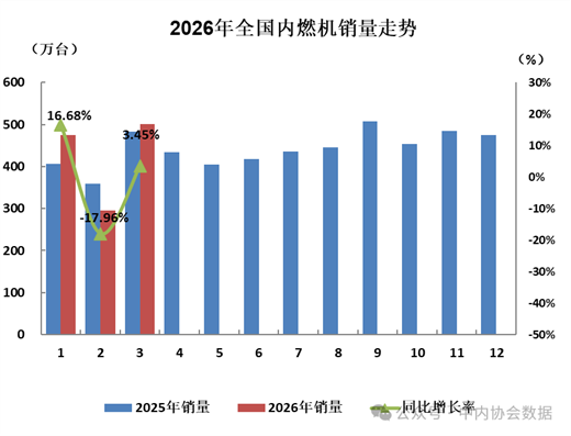 2026-04-15 【機床商務網欄目 機床上下游】2026年3月內燃機行業整機銷量環比大幅回升、同比增長, 一季度銷量與上年同期基本持平略有增長。
