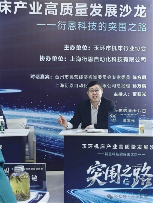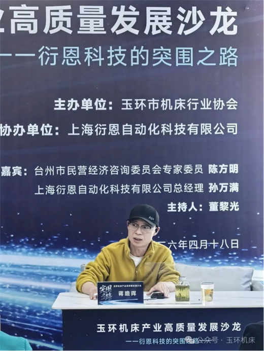 【機(jī)床商務(wù)網(wǎng)欄目 機(jī)床會(huì)議】為深入實(shí)施“民營(yíng)經(jīng)濟(jì)強(qiáng)市”戰(zhàn)略,再創(chuàng)民營(yíng)經(jīng)濟(jì)新輝煌,4 月 18 日,以“衍恩科技的突圍之路”為主題的玉環(huán)機(jī)床產(chǎn)業(yè)高質(zhì)量發(fā)展沙龍?jiān)谟癍h(huán)市經(jīng)濟(jì)開(kāi)發(fā)區(qū)衍恩科技樓成功舉辦。本次活動(dòng)由玉環(huán)市機(jī)床行業(yè)協(xié)會(huì)主辦,上海衍恩自動(dòng)化科技有限公司協(xié)辦,玉環(huán)市經(jīng)信局綜合科負(fù)責(zé)人曾鑫坤,玉環(huán)市質(zhì)量技術(shù)檢測(cè)中心主任蔣瞻暉,玉環(huán)市縫制機(jī)械行業(yè)協(xié)會(huì)等五家制造業(yè)協(xié)會(huì)秘書(shū)長(zhǎng),玉環(huán)市機(jī)床行業(yè)協(xié)會(huì)坎門(mén)機(jī)床廠、中星數(shù)控機(jī)床公司、震環(huán)機(jī)床、琦星智能、天玉益智、格力威機(jī)械、和進(jìn)油泵、正川、意控、群發(fā)、通業(yè)科技等會(huì)員企業(yè),上海衍恩科技公司上下游合作伙伴等40多人共同參與,以對(duì)話升級(jí)互動(dòng),以互動(dòng)匯聚智慧,共探玉環(huán)機(jī)床產(chǎn)業(yè)高質(zhì)量發(fā)展新路徑。