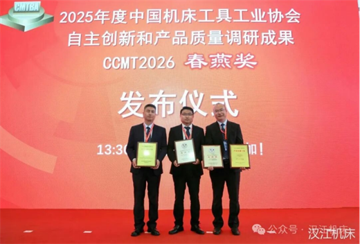 展會首日,漢江機床SK7120數控外螺紋磨床憑借卓越的品質穩定性、精湛的工藝水準與硬核的技術實力獲得行業權威認可,成功獲評2025年度中國機床工具工業協會“產品質量十佳”榮譽稱號,SK7120A數控外螺紋磨床榮獲CCMT2026中國數控機床展覽會“春燕獎”。