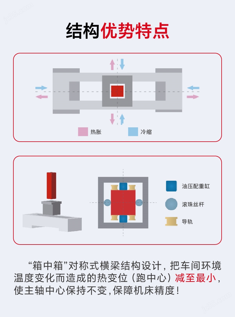 結構亮點:MBU系列采用橋式固定橫梁結構,雙立柱構成封閉框架,具備強大的抗扭抗彎能力。