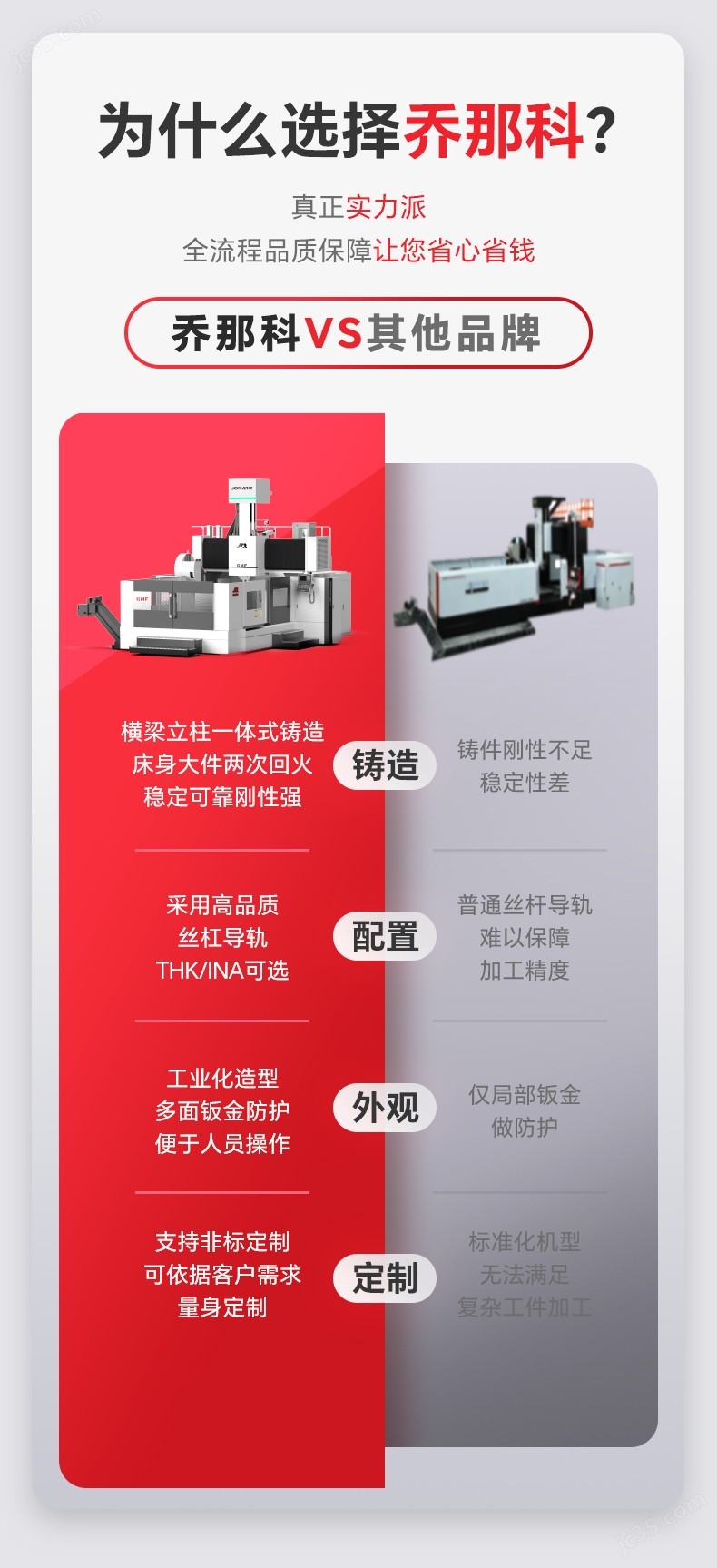 關(guān)鍵部件一體化鑄造,并經(jīng)過二次回火與人工刮研,釋放應(yīng)力,確保機(jī)床多年運行不變形。
