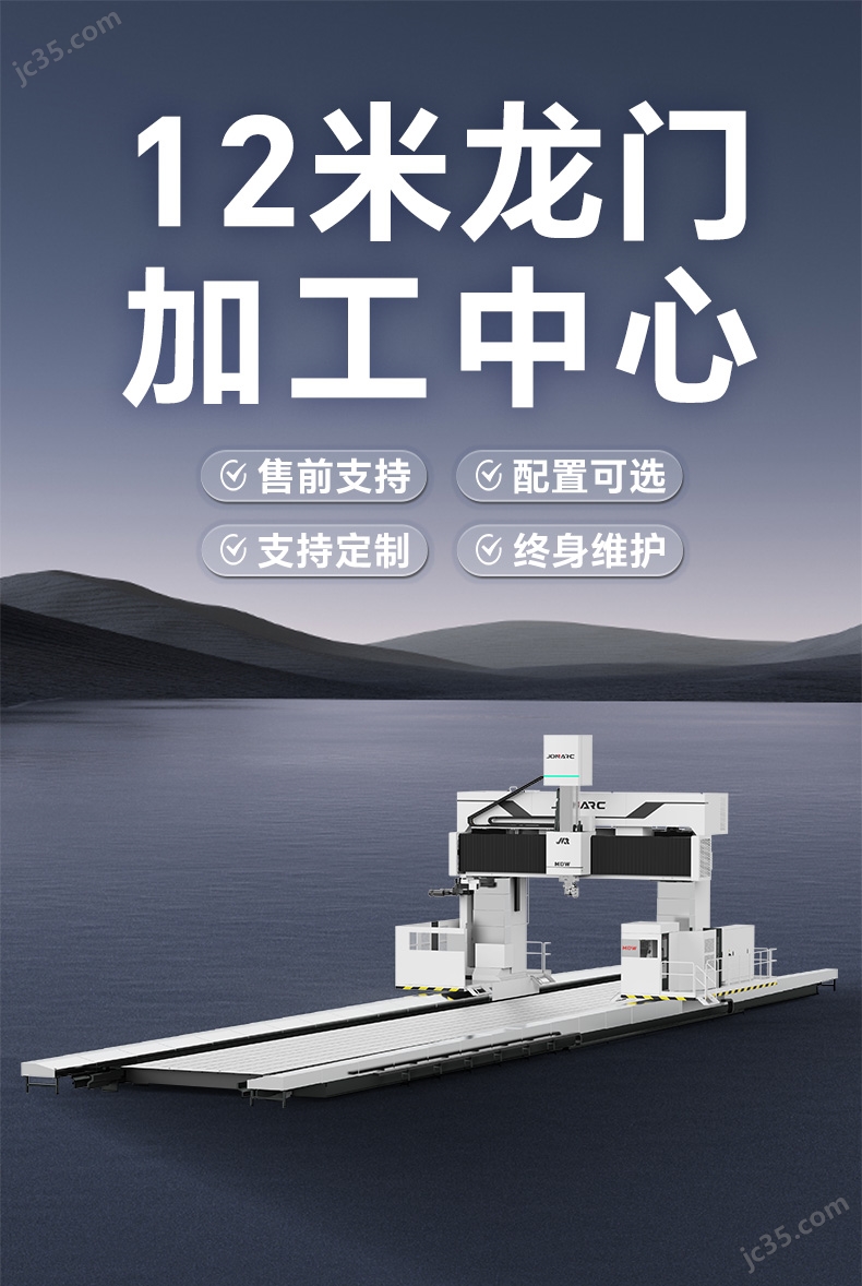 可根據加工需求定制機床,X軸行程最長 60米,Y軸行程最長 12米;