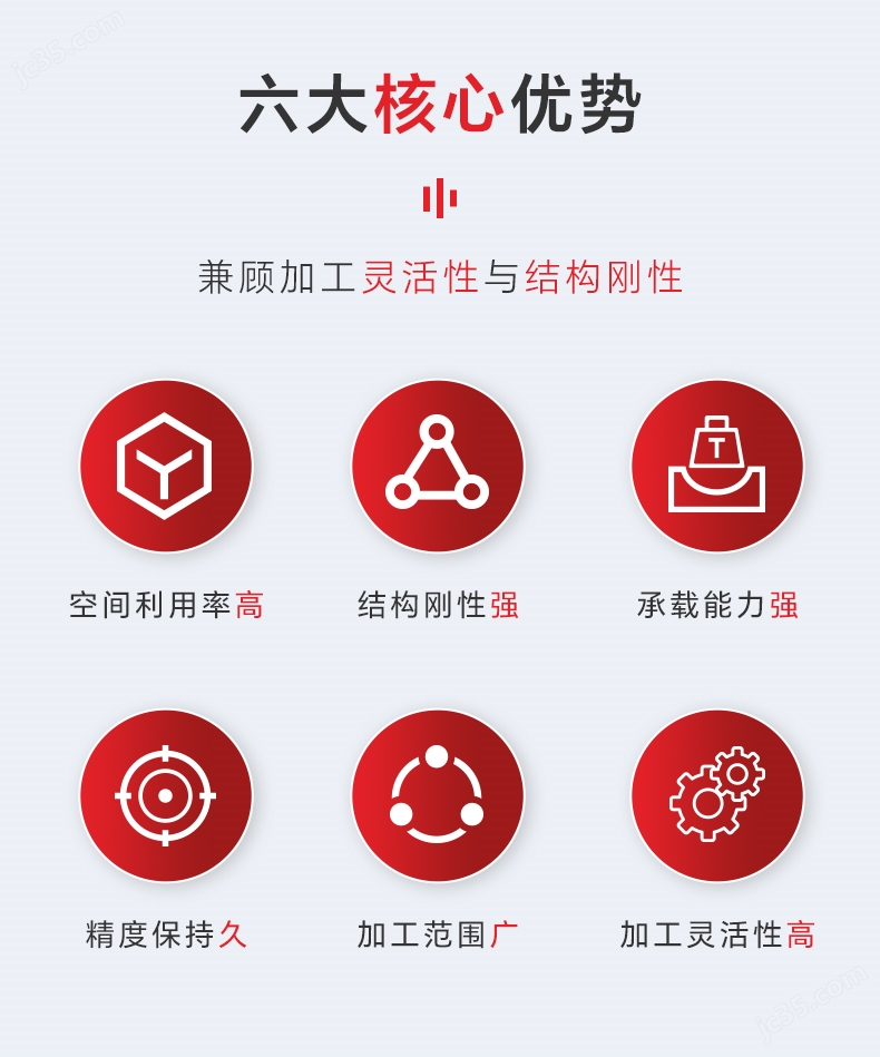 立柱與橫梁均采用大截面高強度鑄件,經兩次回火與應力消除處理,有效避免長時間加工產生的變形。