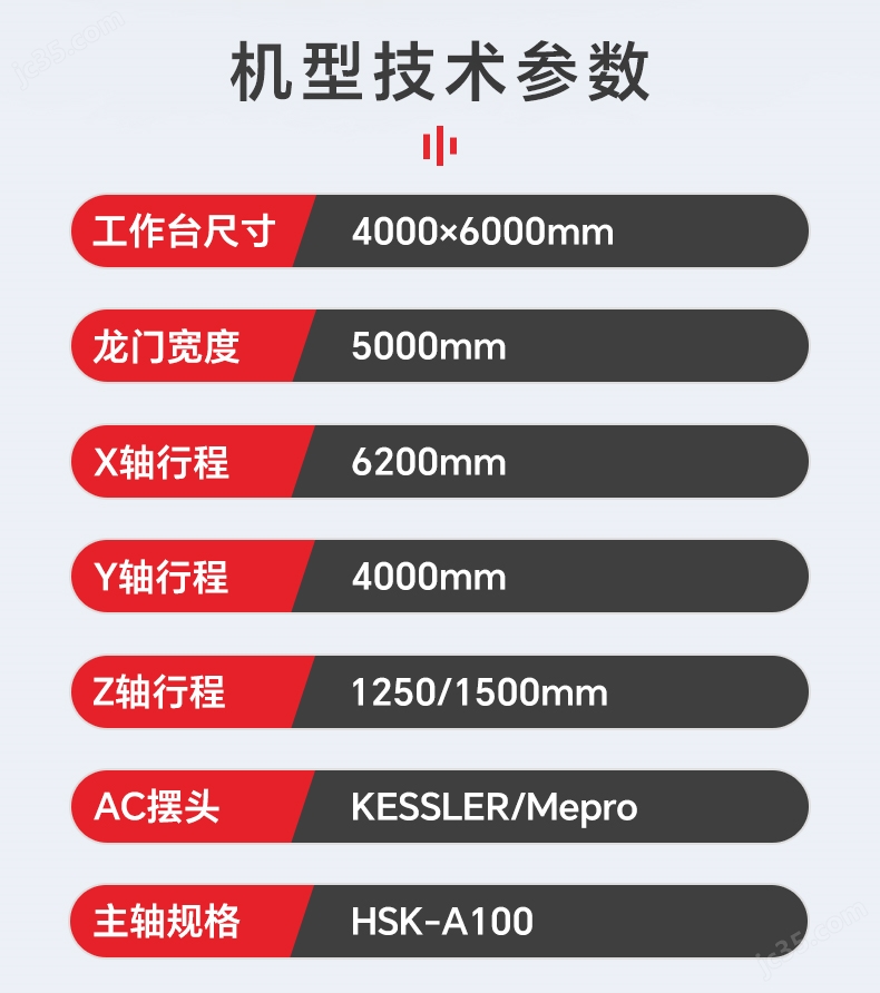 XYZ軸行程:6200/4000/1250(選配1500)mm